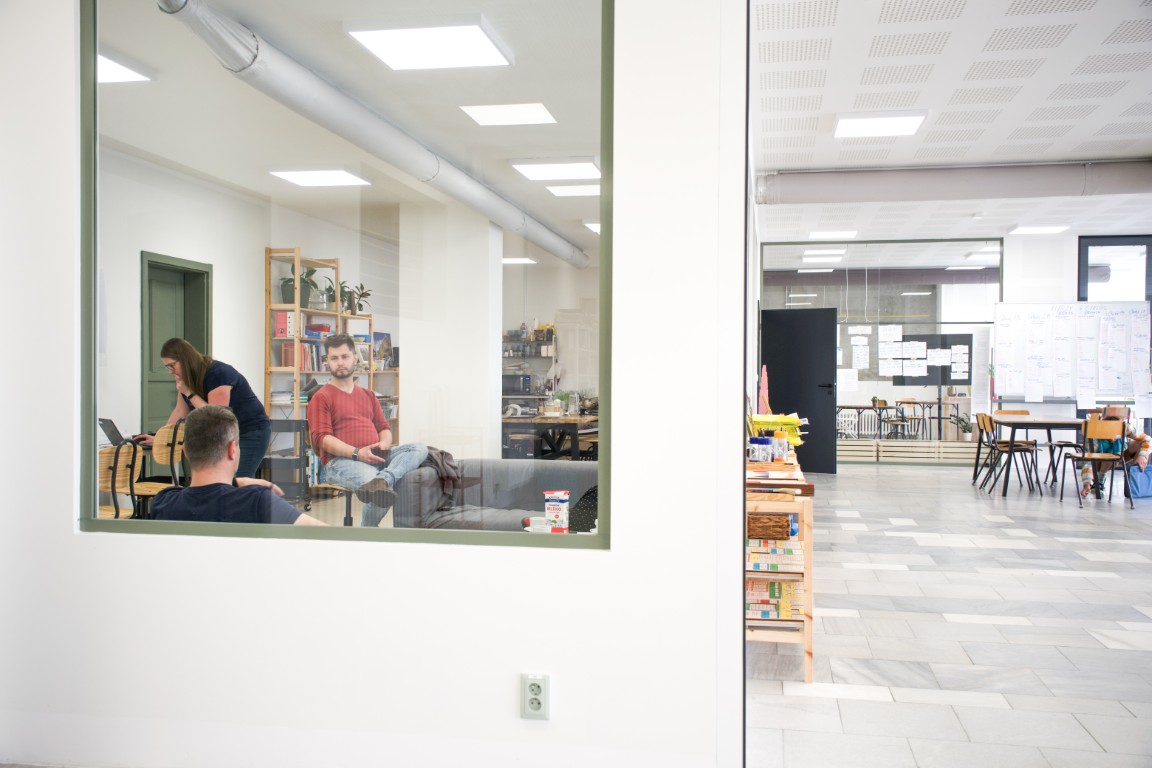 Speciálním prvkem nových prostor je také propojení školního bistra s coworkingem pro rodiče žáků. Ti tak mohou využít sdílený pracovní prostor přímo v budově školy, zatímco jejich děti jsou ve výuce. Bistro navíc budou jako součást svých projektů provozovat sami žáci. „Nejsme uzavřená instituce za plotem. Propojení s venkovním světem skrze výlohu na úrovni chodníku je pro nás klíčové. Chceme být součástí místního života, a zároveň nabízet rodičům zázemí, které v běžných školách nenajdou,“ doplnila Katarína Prevendarčíková, členka vedení školy.