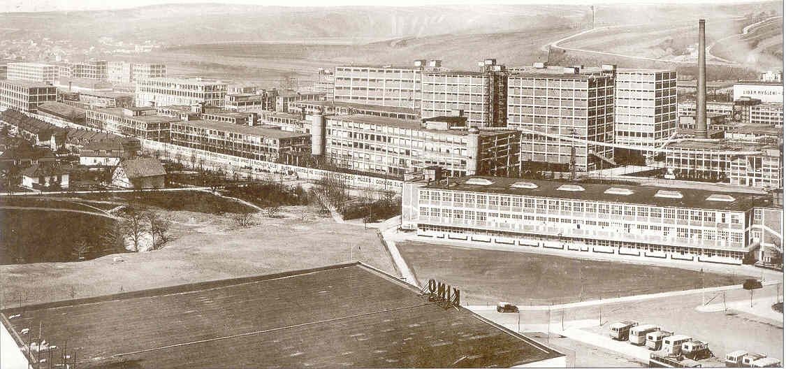 Základem nového města se stala továrna. Počáteční fáze neplánovitého rozvoje továrny vyvrcholila výstavbou první tovární budovy naznačující pozdější pojetí výrobních budov. Účast architektů zde ještě není zaznamenána, i když Gahurova spolupráce od 20.let 20.století je velmi pravděpodobná.